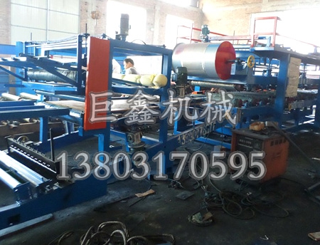 泡沫復(fù)合機(jī)生產(chǎn)線采用的生產(chǎn)工藝以氣、電、機(jī)械為一體,是加工彩鋼保溫復(fù)合板的設(shè)備,工作速度采用變頻無級調(diào)速,能一次性復(fù)合成瓦楞型復(fù)合板,全套流水線由放料機(jī)構(gòu)、壓型機(jī)構(gòu)、復(fù)合機(jī)構(gòu)(壓筋、涂膠、加溫、復(fù)合、卷邊、開槽、整邊、氣動、自動切割)組成,是生產(chǎn)工業(yè)廠房、倉庫等屋面板和墻板的設(shè)備。