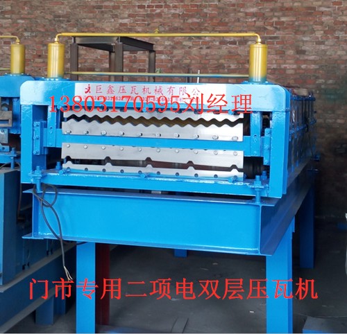 應(yīng)廣大客戶要求,我廠生產(chǎn)二項(xiàng)電840-900雙層壓瓦機(jī),是門市房840-900雙層彩鋼壓瓦機(jī)。該雙層壓瓦機(jī)在二項(xiàng)電情況下可以正常生產(chǎn),解決了有些地方不能安裝三相電的困擾,為客戶提供方便。咨詢訂購電話:13803170595劉經(jīng)理,微信同號。