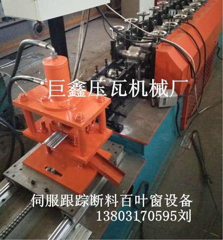 伺服斷料百葉窗設(shè)備,巨鑫伺服追切百葉窗設(shè)備,百葉窗邊框自動(dòng)沖孔機(jī),巨鑫壓瓦機(jī)械廠生產(chǎn)。我廠生產(chǎn)的 伺服斷料百葉窗設(shè)備,采用伺服電機(jī)追切,邊生產(chǎn)邊追蹤斷料,不停機(jī)的方法,提高該設(shè)備的生產(chǎn)速度。